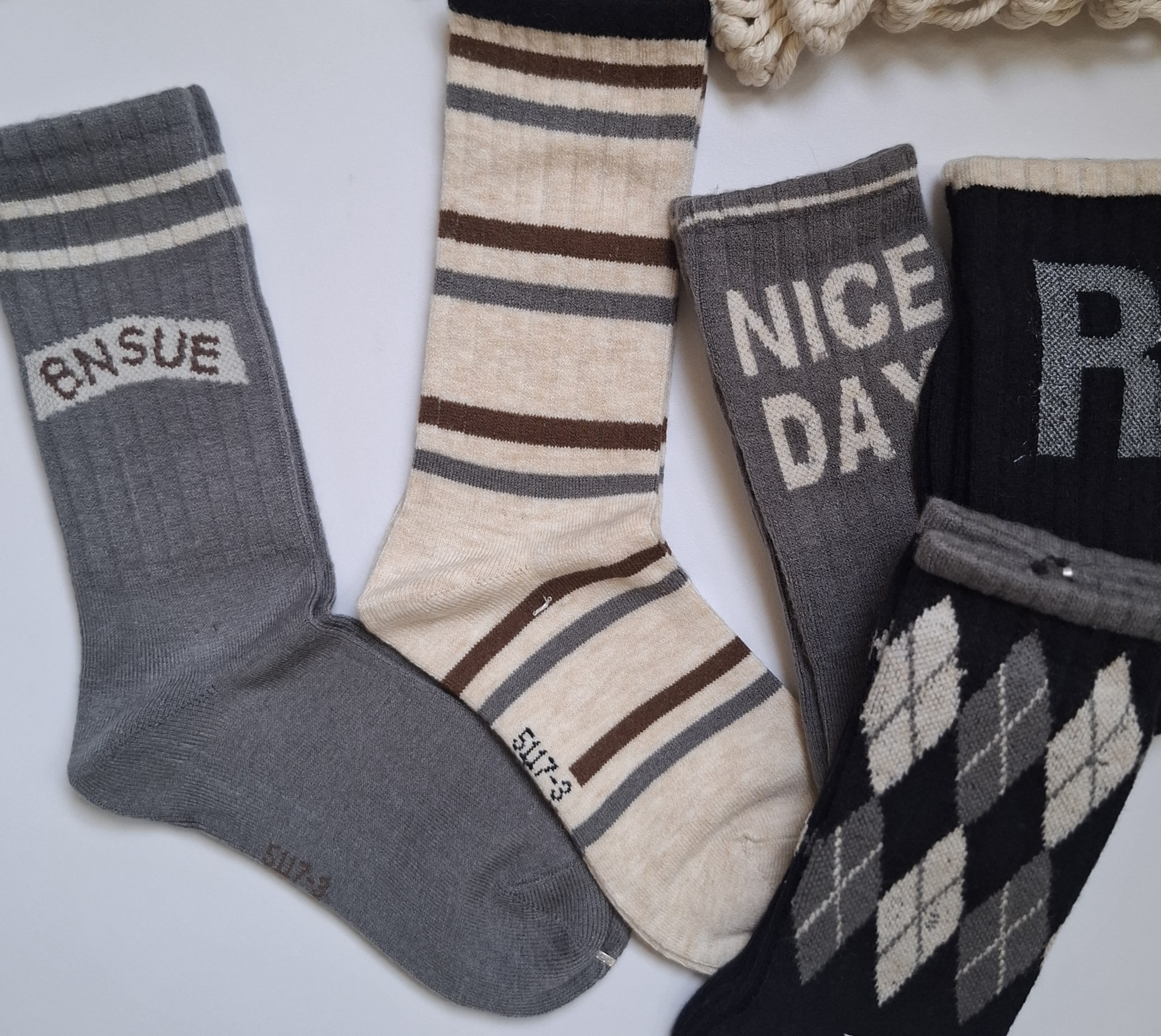 جوراب زنانه طرح دار طوسی کرم